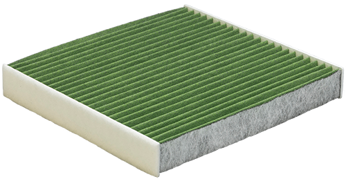 - 『高除塵・抗ウィルス・抗菌/防カビ・脱臭・風量安定』 グリーンのフィルター5大効果が車室内の悩みを解決 交換目安は1年に1回または走行10,000km